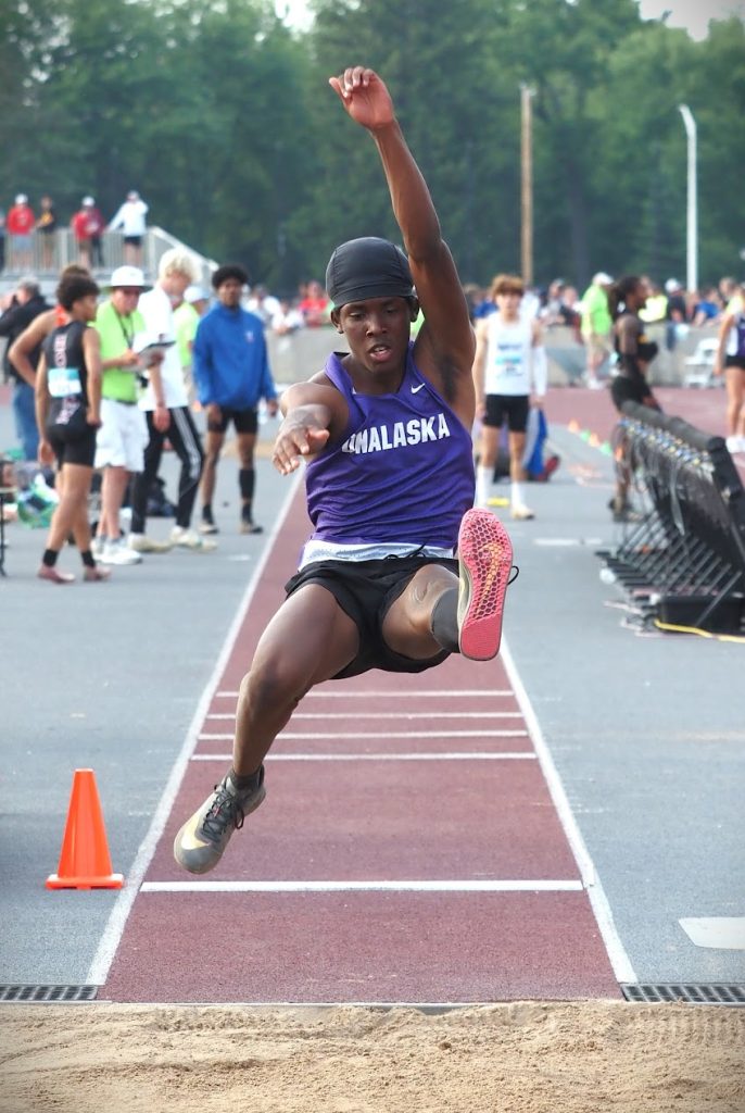 He knew he’d accomplished that when he soared 23 feet, 10 inches — more than 2 feet farther than his sectional performance — on his second attempt. That put him at the top of the leaderboard for a little while and kept him near the top the rest of the evening.